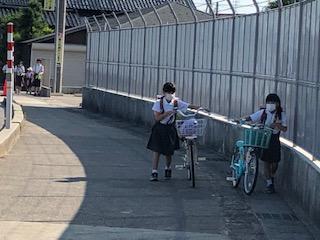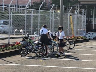 コロナ感染防止の対応のため、約1ヵ月遅れの開催となりました。今年度は1・2年生が歩行練習、3年生が自転車の乗り方の練習を行いました。朝から自分の自転車を引っ張ってくる3年生は、いつもより楽しそうな感じがしました。