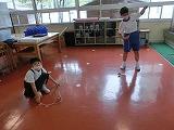 今日は雨模様で外遊びができませんでした。そのような中、3年生はコマ回しをして遊んでいました。上手に回せる児童が多く、友だち同士で競争をして楽しいんでいました。