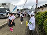 2ヵ月ぶりに大屋地区民生委員の方々との交通安全街頭指導がありました。子どもたちの元気な姿を見て委員の方々も嬉しそうでした。
