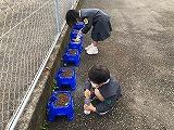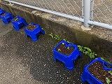 先週の登校日に植えたアサガオに芽が出ていました。土日のお休みの間に芽を出したようです。朝登校した1年生はビックリ!嬉しそうに早速水やりをしていました。