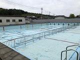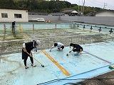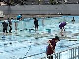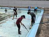 プールの内壁塗装改修のために、今年度は例年より一ヵ月ほど早くプール掃除をしました。