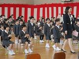 校長先生のお話もしっかりと聞くことができました。校長先生から「3つの約束」(元気な返事と挨拶、話を聴く、自分でする)ができるようになることを楽しみにしていると言われ、1年生はキリッとした顔でうなずいていました。