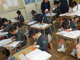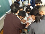 1学期の福祉体験に続き、社会福祉協議会のみなさんをお迎えし、点字についての学習をしました。点字の仕組みや点字になった物を見たり、実際に点字を打つ活動をしました。