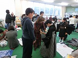 4年生が新しく加わった今年の輪島まだら。保護者の皆さんの着付け教室が行われました。1年前にも練習しているのですが袴の着付けは難しく、講師の先生に習いながら頑張っていました。
