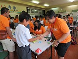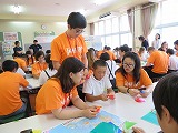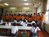 5年生は午後からの登校日でした。ジャパンテントの行事の一環として27名の留学生が来校し、5年生と交流をしました。