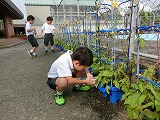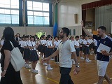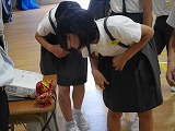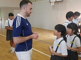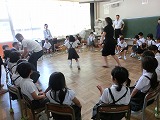 1・2年生と自己紹介の後、いくつかのフルーツの正しい発音を習い、フルーツバスケットをしました。