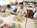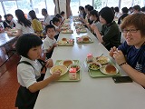 一緒に給食を食べました。子どもたちも嬉しそう!