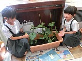 2年生は、ナス・ミニトマト・パプリカが大きくなってきました。国語でも観察日記を書いています。