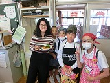5年生が家庭科の調理実習で野菜サラダを作りました。ALTのジュリア先生にも食べてもらいました。「Very delicious!!」と喜んでもらいました。