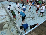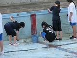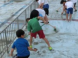 水泳シーズンに向けて、今年度のプール掃除が行われました。午後から4~6年はやる気満々できれいにしてくれました。