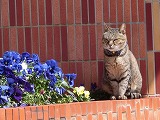 近所の飼い猫も応援しているようです。
