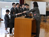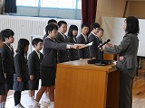 児童会代表委員。 2年生も上手に任命証をもらいました。