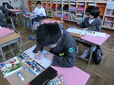 じっと写真を眺めては、感想を書いたり、きれいに絵を描いたり、楽しく活動できました。