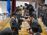 1年生からお世話になった6年生へプレゼントが渡されました。6年生はうれしそう!