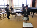 これまでご指導いただいた輪島まだら保存会のみなさんに感謝状と児童のお礼の手紙が渡されました。