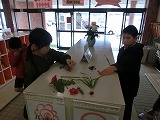 エアリーフローラの成り立ちや生花を使った簡単な花束づくりの体験をしました。