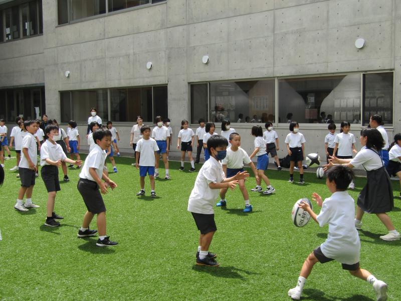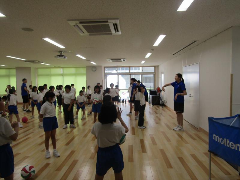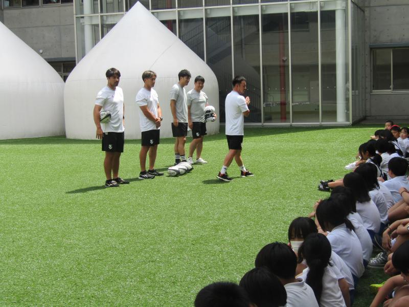 7月18日にリコーブラックラムズ東京の皆さんが来校しました。
