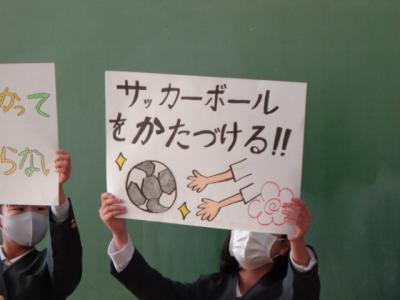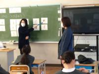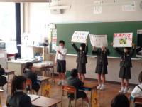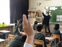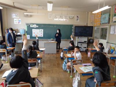 6年生が外国語(英語)の授業していました。ALT(授業の補助をしてくれる外国人)の英語での質問を聞いて、黒板に貼られた英語表記の中から自分で選び、答えていました。