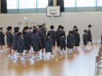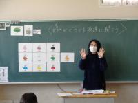 体育委員会の児童が、体育館や運動場の使い方について1年生に教えていました。伝える内容の明確化と誰に伝えるかの相手意識がされ、1年生に伝わりやすいようにイラストを使う工夫がありました。