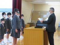 パソコンの貸与式では、代表児童より「しっかりと使いたい」との決意表明がありました。