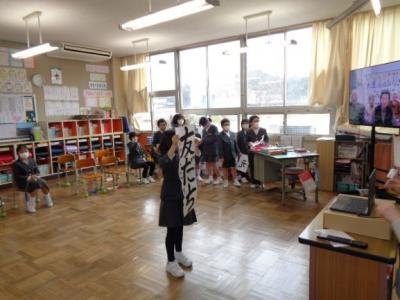 なわとびやけん玉、習字の披露やクイズやジャンケン大会など盛りだくさんでした。3年生も百寿苑の皆さんも笑顔いっぱいでした。早く対面での交流ができるようになりたいですね。