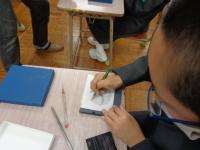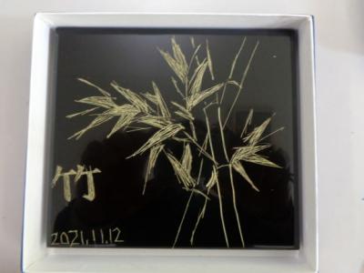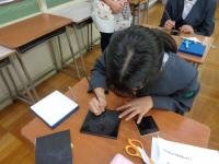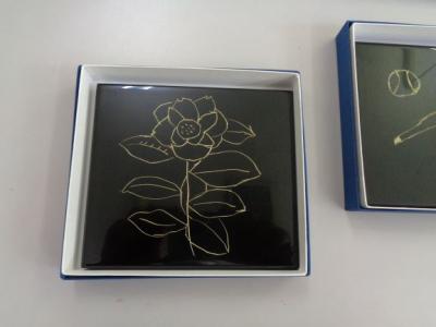 地元の職人のみなさんのご協力を得て、6年生が沈金パネルを製作しました。沈金の技法を教えてもらえるのが輪島の強みです。
