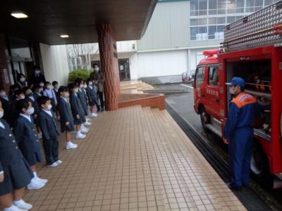 消防車を見せてもらいました。その後もたくさんの質問が出ていました。