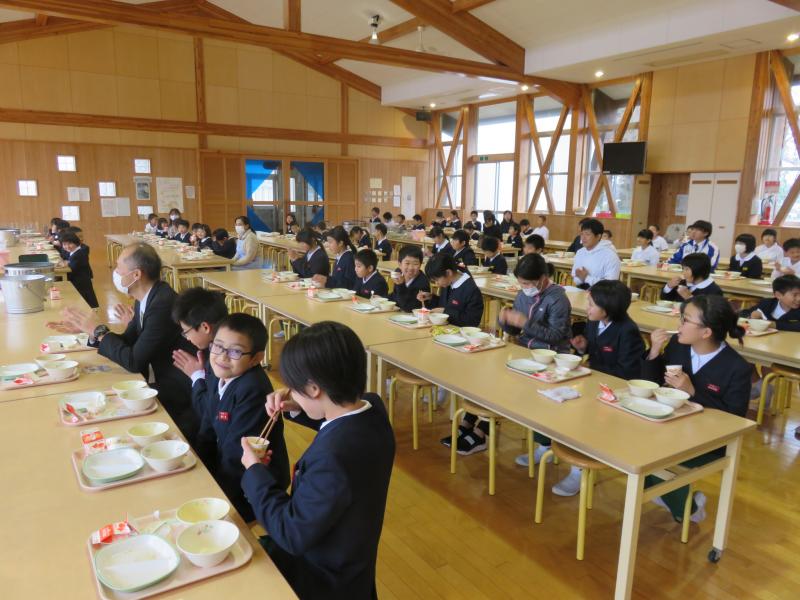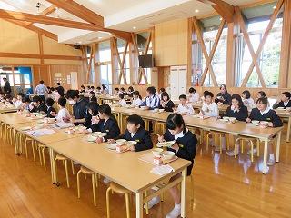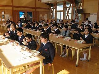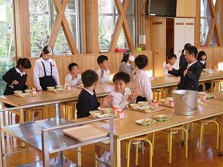 本校では,とにかく静かに食べることを重視しています。大勢で一斉に食べる場合は,いやな思いを周りの人にさせないようにという配慮をして欲しいからです。その伝統が本校ではずっと守られています。