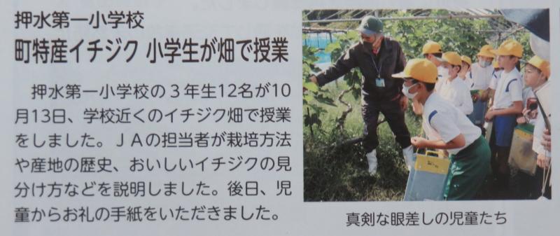3年生のイチジク園の見学が,JAの広報誌に掲載されていましたのでご紹介します。