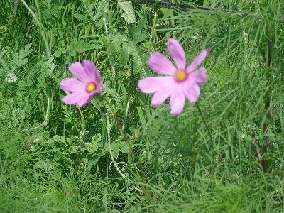 コスモスとひまわりです。 コスモスは,4年国語「一つの花」に出てきます。ひまわりは,職員の背丈を超えて花を咲かせました。
