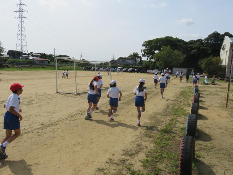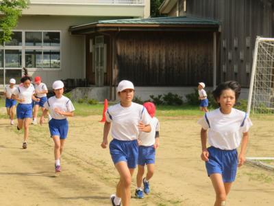今日から、マラソン練習が始まりました。初日目からみんなで汗を流しています。児童も先生も一生懸命走っていました。