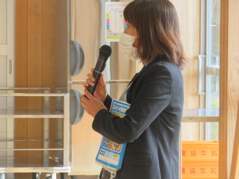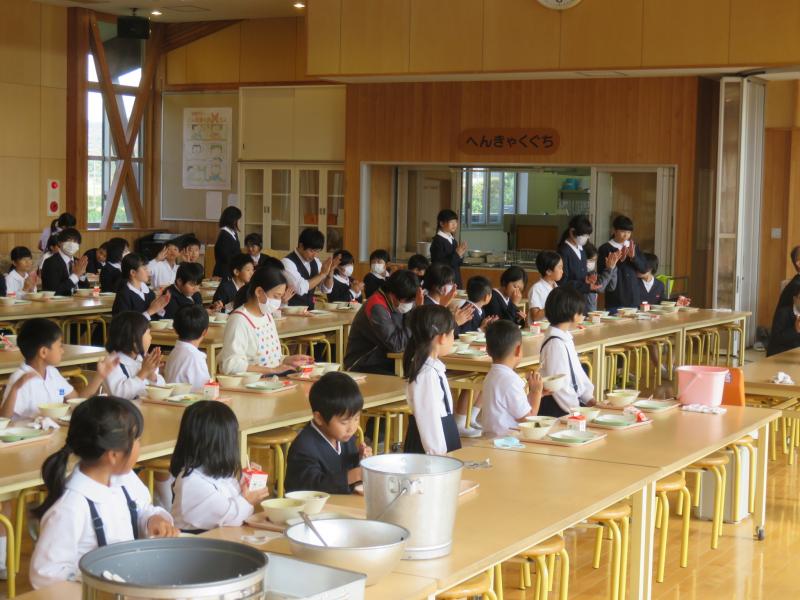 給食の時間に児童の代表から歓迎の言葉がありました。
