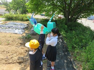 畑の作物が大きくなってきました。それは,朝から子どもたちが,水やりを頑張っているからだと思います。生き物は,動物も植物も手(愛情)をかけただけ成長しますね。