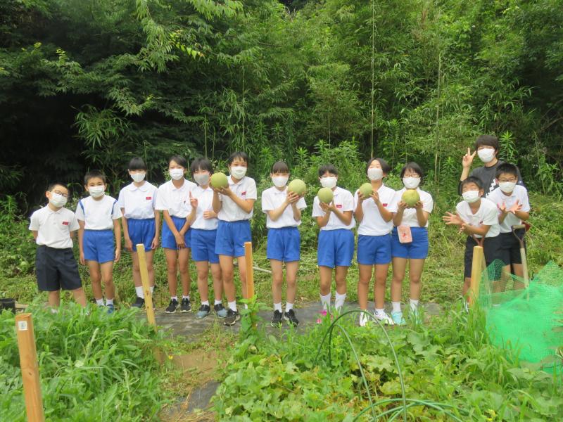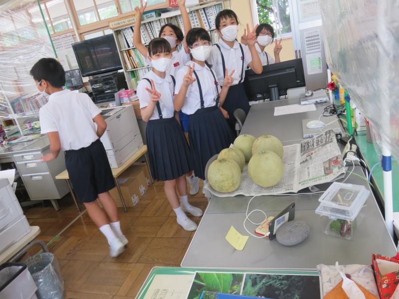 6年生が,5月から大切に育ててきたメロンの収穫の時期が来ました。このところの雨で生育が心配されましたが