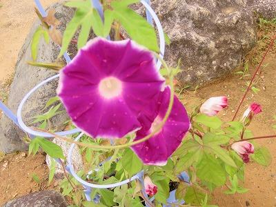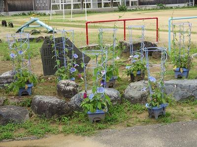 ゴーヤのつるはまだとても元気です。これから,ご家庭の方にゴーヤが届くと思います。夕飯の一品に加えて頂ければいいな,と思います。