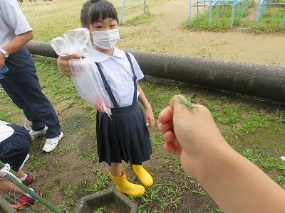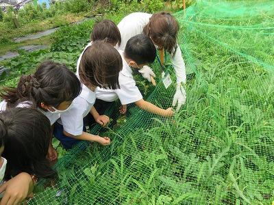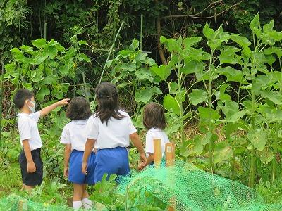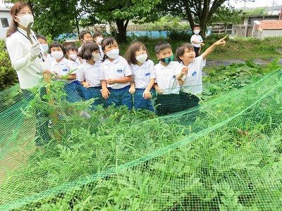 他の学年から畑の作物を収穫できたという話を聞き,1年生も自分の畑に行ってみました。