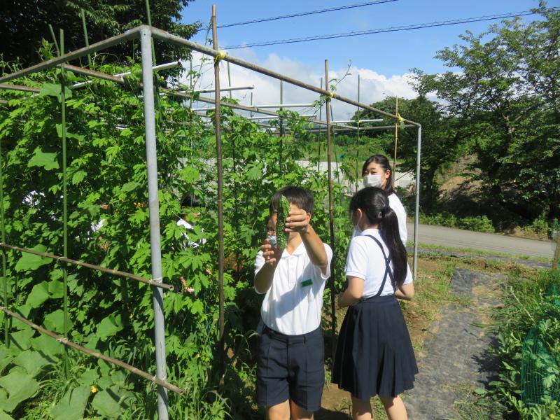 そして,今日,4年生がゴーヤの収穫を初めてできました。