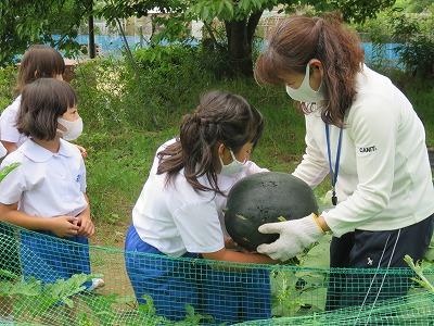 その後,スイカの観察もしました。スイカの収穫も楽しみです。