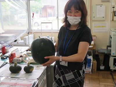 このスイカを教頭先生が持ってみました。「重い,重い!」と言っていました。
