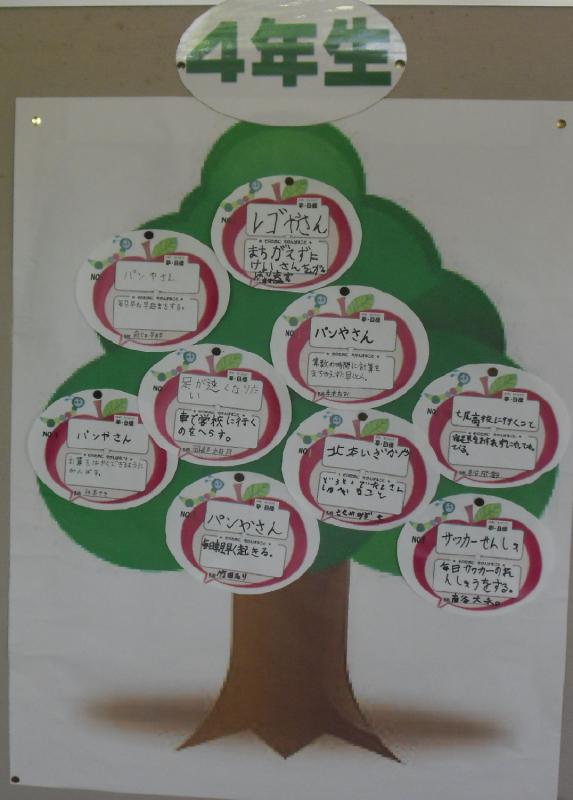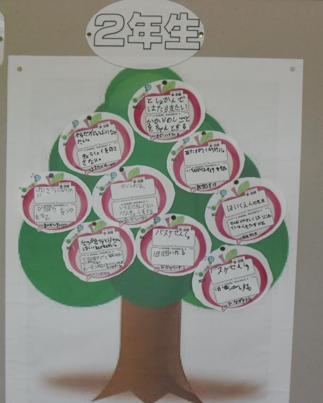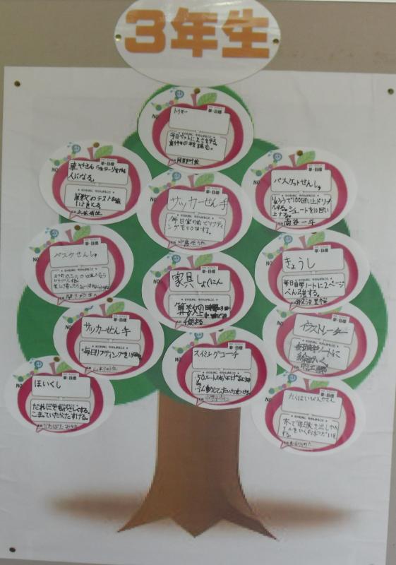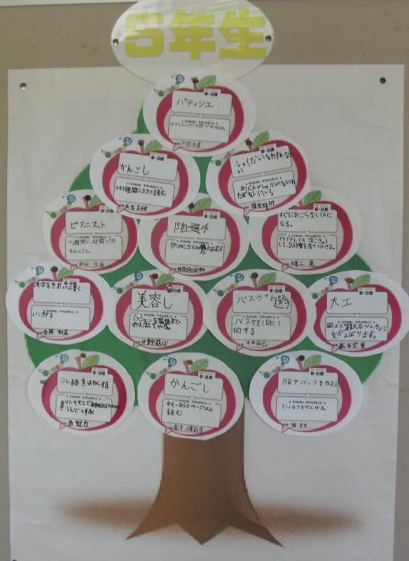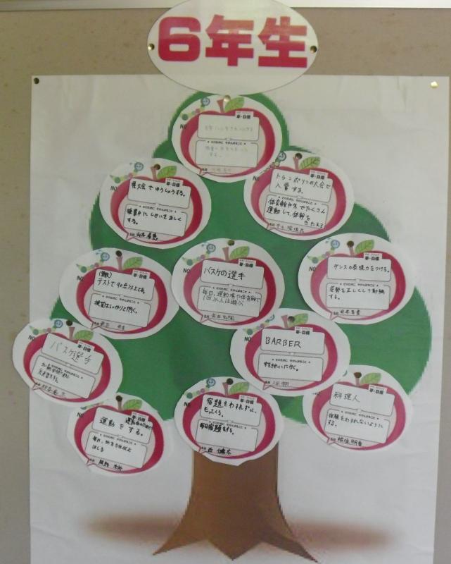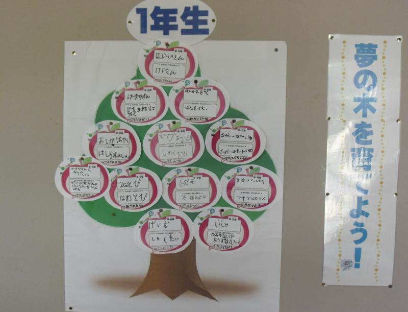 1年生から6年生は,自分の夢を玄関前の「夢の木」に掲げ,夢をかなえるための努力目標を立てます。