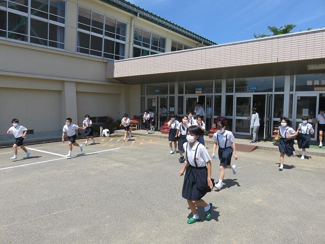 児童は,本番さながらの真剣な態度で避難できました。