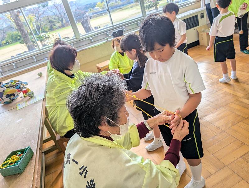毎年、1年生が学校支援ボランティアの方をお招きして実施している「昔遊び交流会」を今年も行いました。