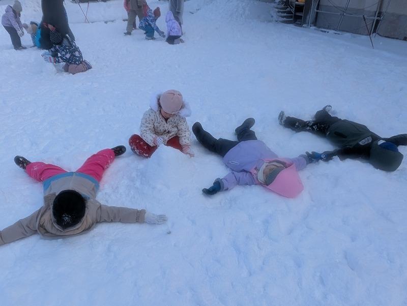ジャンボそりで坂を滑り降りるスリルを思う存分楽しんだり、自由に雪遊びをしたりすることができました。雪だるまを作る子、雪山を作ってトンネルを作る子、雪合戦を始める子、ひたすら雪上で寝転ぶ子など、どの子も楽しそうでした。他校の友達と仲良く、ルールを守って雪遊びをすることができました。また、「出会いのつどい」や「別れのつどい」など、各校で役割を決め、子ども達が司会・進行を行いました。大きな声ではっきりと、感想も言えました。