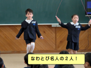 4年生は、「6年生に挑戦」と題して、「ボトルフリップ」「なわとび」「勉強なぞ解き」の3本勝負を挑みました。それぞれの種目で指名された6年生は、少し照れながらも嬉しそうにステージに上がり、4年生からの挑戦を楽しんでいました。4年生の堂々とした司会進行とチャレンジャー精神は、来年度いよいよ高学年に進級するんだという意気込みにあふれているようでした。
