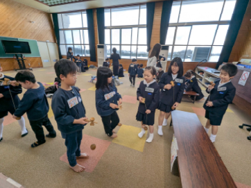 今の子ども達にとっては、ほとんどしたことがない遊びでしたが、ボランティアの方からやり方を教わると、夢中になってチャレンジしていました。