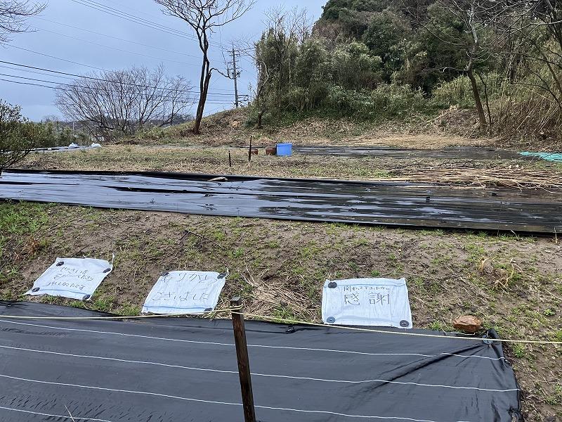 このほど、畑に下記のようなメッセージが書かれていました(写真)。