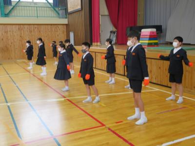 6年生への感謝の気持ちを込めて,詩の群読「6年生は中学生」や「ツバメダンス」を披露しました。