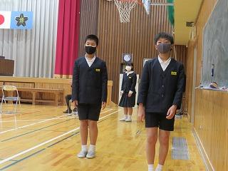 全校児童にしっかりと挨拶と意気込みを述べていました。