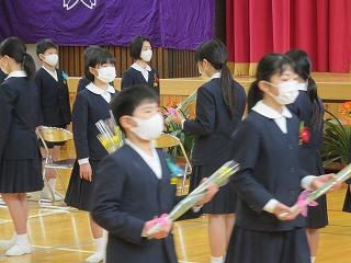 卒業証書授与式を開催しました。お天気にも恵まれ,卒業生は中学校に向けて旅立っていきました。