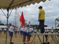 早朝からの土砂降りで運動会の開催が危ぶまれましたが,子どもたちの運動会への強い想いが悪い流れを吹き飛ばしてくれたようです。7時前には雨が上がり,運動会開催の狼煙の花火が勢いよく打ち上げられました。それに伴って各町内からの軽トラが一斉にグラウンドに入り,いよいよはじまるなあ,という感じがしました。